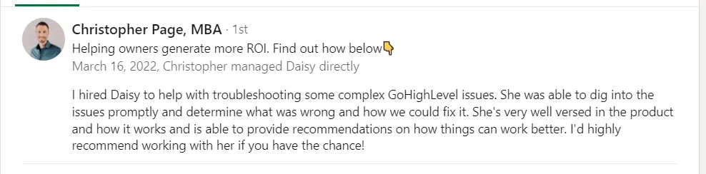 I love helping growth-driven online businesses DOUBLE their project fulfilment with GoHighLevel support and builds.
